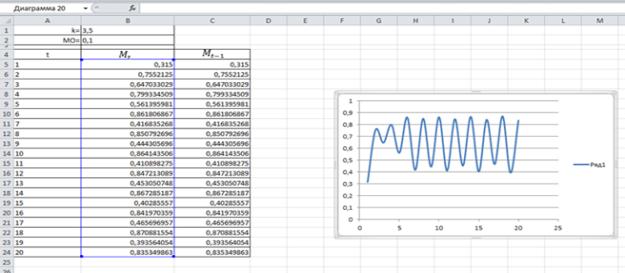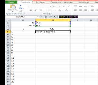 формуланы жазамыз: =$B$1*(1-B5)*B5 осы формуланы B24 ұяшығына дейін