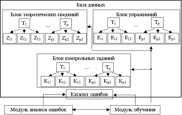 высокий), после чего к модулю обучения подключаются реляционные таблицы базы данных,