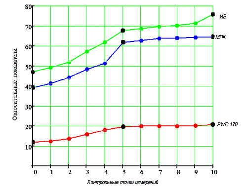 динамики показателей PWC 170, МПК, ИВ в процессе тренировок.
