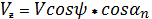Окружная (тангенциальная) состовляющая вектора скорости:
