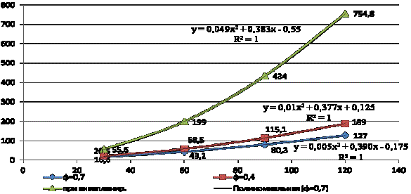 транспортного средства при различных исходных скоростях и коэффициентах сцепления шин с дорогой.