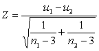 n1 и n2 – объемы соответствующих выборок, а u1 и u2 –