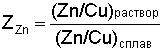 где отношение концентраций (Zn/Сu)раствор определялось