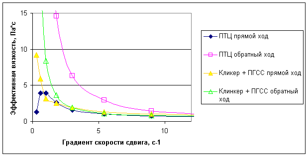 наблюдается уменьшение эффективной вязкости, интенсивно протекающее в цементной
