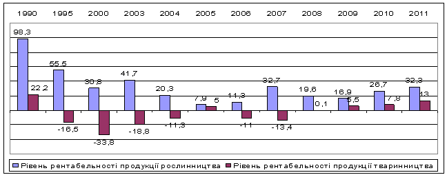 роками дуже коливається, і по відношенню до рівня рентабельності рослинництва у