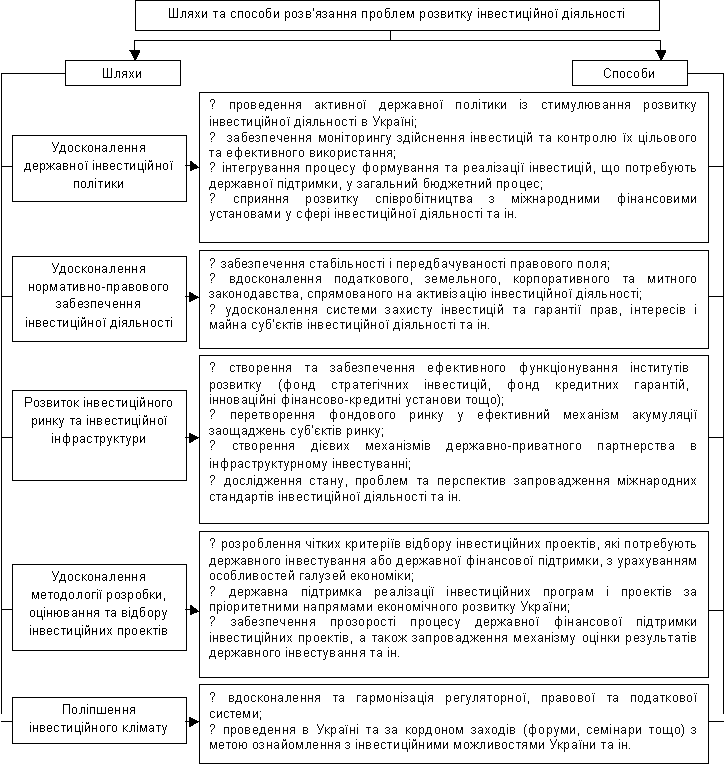 способи розв’язання проблем розвитку інвестиційної діяльності в Україні