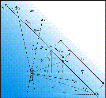 Обозначим координатные оси, соответствующие ДП1-2 и ДП3-4 (Х0,Y0)