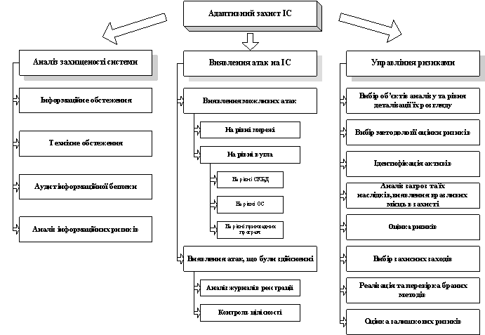 складається з трьох основних складових: аналізу захищеності ІС, виявлення атак
