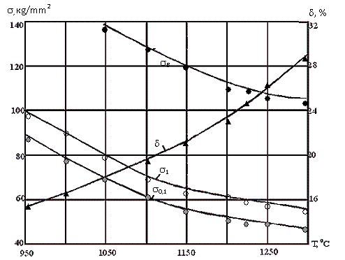 Figure 2 Dependence of ductility and resistance to deformation of the alloy 47HNM