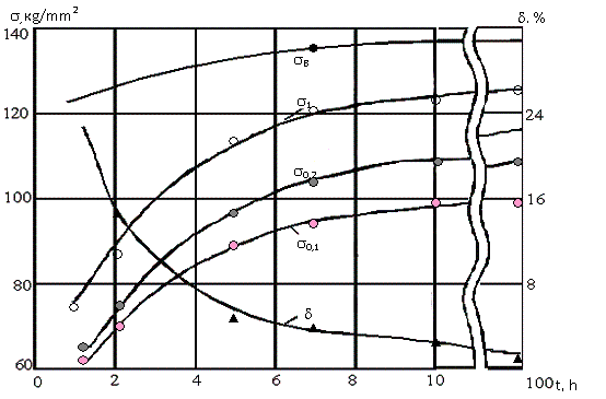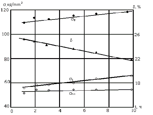 stress of aging, especially the yield stress has a value not inferior to the properties of the alloy, aged at 700 ° C. Therefore, this mode is recommended