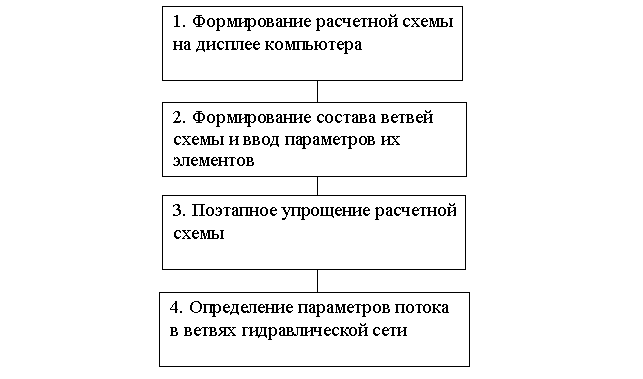 гидравлической сети, на основе использования графического редактора расчетных схем [2].
