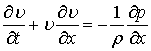 рідину ідеальною, в одномірному випадку система рівнянь Ейлера має вигляд: