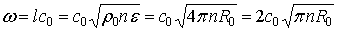 пульсацій газового пухиря залежить від швидкості розповсюдження звуку в рідині с0, радіусу газового пухиря R0 і концентрації пухирів n в рідині. Враховуючи раніше введене