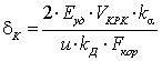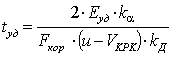 визначимо глибину впровадження КРК в грунт за один удар δК та тривалість ударного імпульса