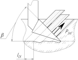 ножем від початку контакту з масивом до повного сколу елемента грунту;