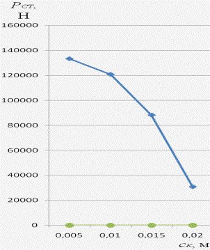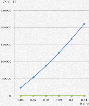 параболічній залежності із збільшенням ширини наконечника bК (рис. 4); спадає прискорено при зміні товшини консолі