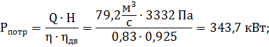 На пример диаграммы расхода дымовых газов дымососа за отопительный период (2010-2011 гг.) при механическом регулировании (рис.2), паспортных данных приводного двигателя типа А4 ДА304 мощностью 500кВт, напряжением 6кВ, номинальной скоростью 1500 об/мин и аэродинамической характеристики дымососа ДН-22-0,65 определена потребляемая мощность дымососа в номинальном режиме роботы ( с учетом КПД дымососа и КПД двигателя).