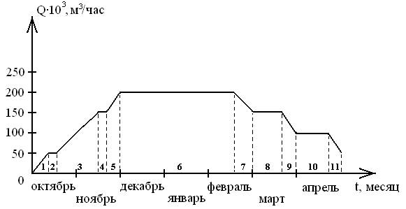 Рис.2. Диаграмма расхода дымовых газов за отопительный период при механическом регулировании привода.