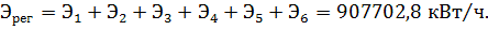Суммарный расход электроэнергии с регулируемым электроприводом с учетом реальной роботы дымососа:
