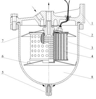3) фильтроэлемент объемного типа [7]; 4) нагревательный элемент; 5) сливная