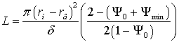 по формуле, полученной в [7] исходя из способа намотки ленты по закону