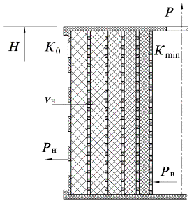 материала и физическими параметрами фильтроэлемента, степенью обжатия материала