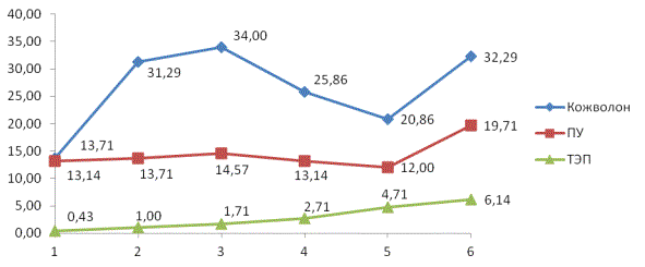 термоэластопласты (ТЭП), кожволоны и полиуретаны (ПУ).