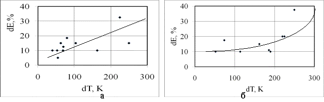 Рис.2. Влияние разности температур в колонне (dT) на разницу в