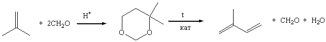 На протяжении полутора веков было разработано большое количество способов синтеза изопрена из самых различных видов сырья, некоторые из них стали промышленными [1]. Один из таких методов, реализованный в России, базируется на изобутилене и формальдегиде.