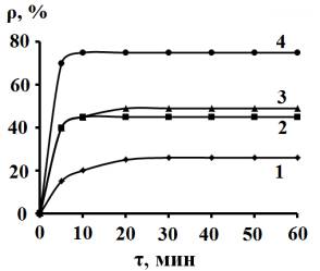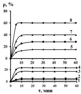 последующая сорбция в течение 15 минут ведет к возрастанию ρ до 20 %. Дальнейшее