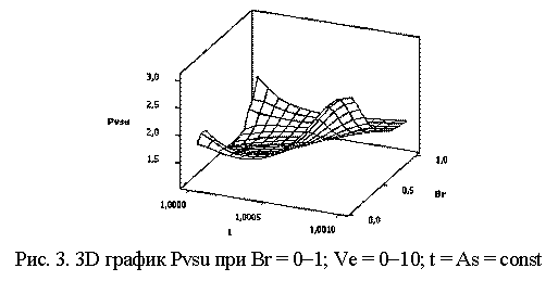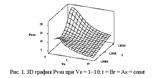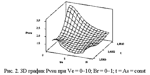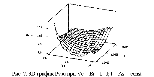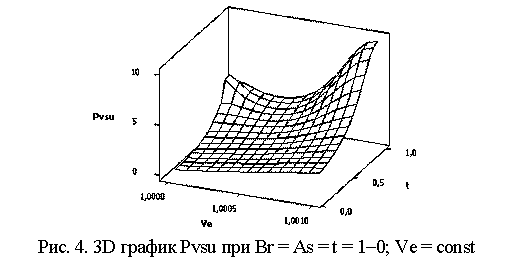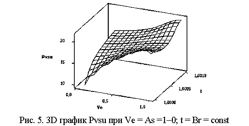 На рис. 5 показана 3D зависимость для Pvsu = f(Ve, t) при следующих значениях переменных: Ve = As =1-0; t = Br = const. Аналогичную зависимость можно