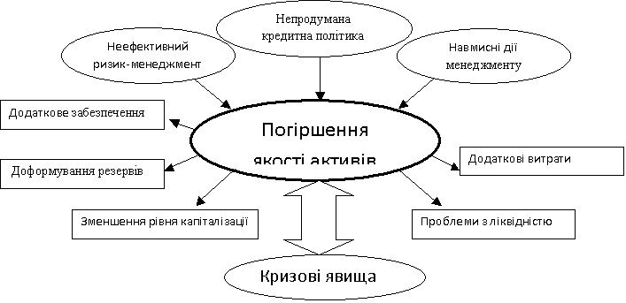 виникнення кризових явищ у банківській установі. Зниження якості активів є
