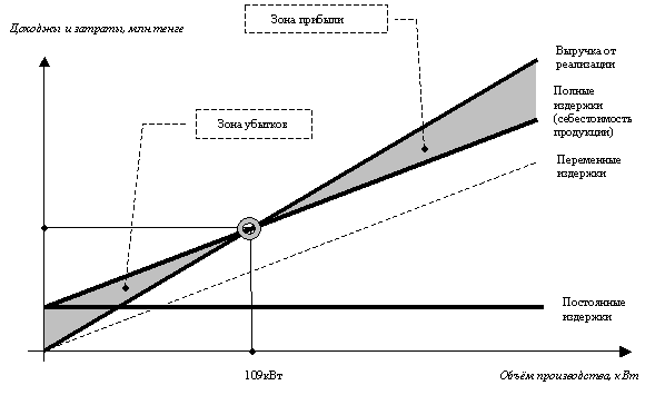 точке безубыточности согласно расчету и согласно графика составил 109 кВт.