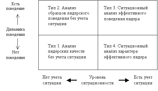 ситуацион-ности) сложились четыре типа подходов к изучению теории лидерства