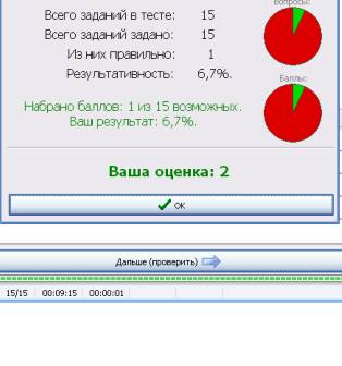 студент затрачивает не более 7,5 минут. По окончанию тестирования программа