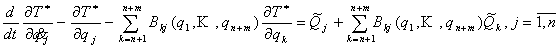 содержащих множителей связей уравнений в избыточных координатах в форме А. И. Лурье ([2],стр.,320, уравнения