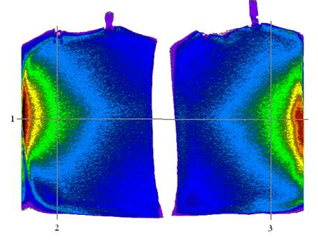 двух фантомов с одинаковой температурой t = 24,9 °С, полученные во взаимно перпендикулярных проекциях с