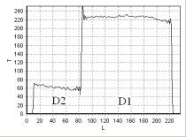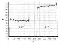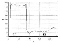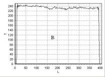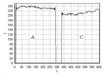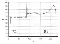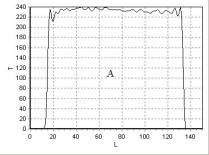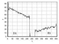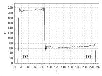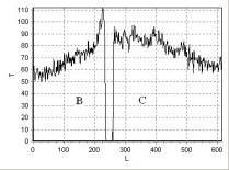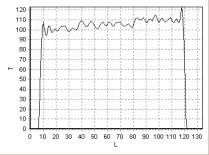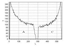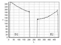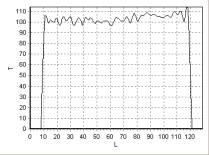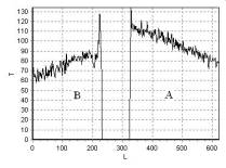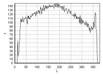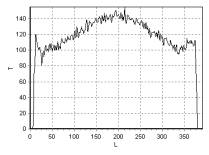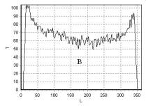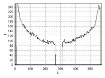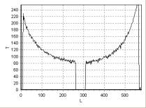 рис. 4 приведена зависимость интенсивности сигнала T от длины L, измеряемой