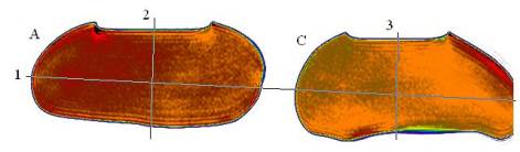 в пикселях, для линий 1, 2, 3 (рис. 1), соответственно, а на рис. 6, рис. 7,