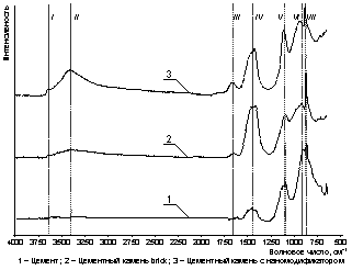 наномодификатора способствует проявлению в цементном камне полос поглощения –