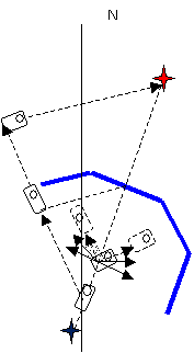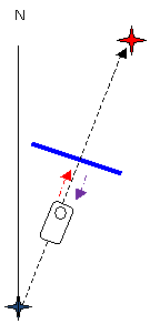 возвращается на старую траекторию, используя установленный на нём компас