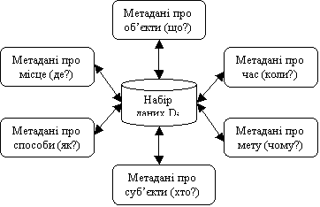 за схемою Захмана представлено на рис. 1.2. Кожен з вимірів метаданих – це