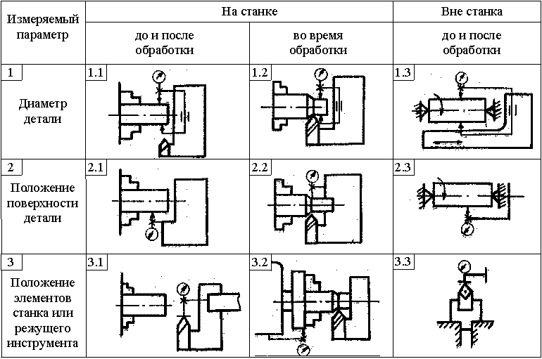 деталей, основанная на измерении диаметра специальными устройствами на станке,