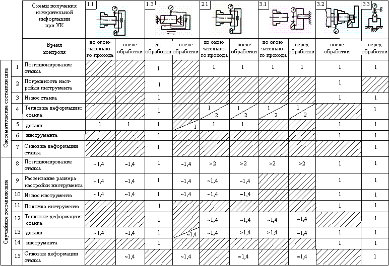 силовых деформаций измеряемых элементов станка, УК со схемой контроля 3.3 –