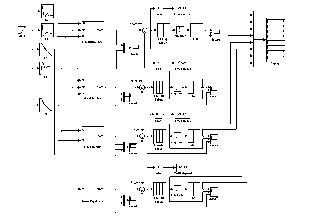 формируются генератором Ramp. На схеме модели дизеля, турбины, компрессора