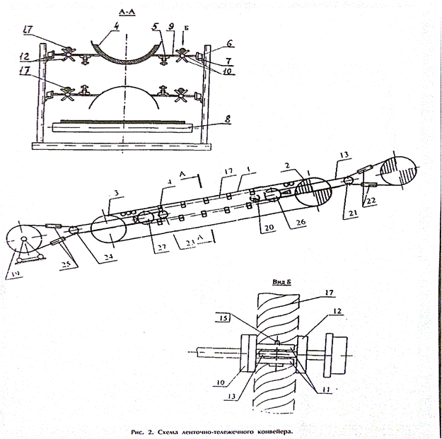 fixed in a special conveyor design KazNTU – by belt trolley [13] , with the use