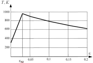 Отметим, что при значении e близком к eкр, температура поверхности рельса приближается к 1000К. Приведенное значение температуры при eкр близ-