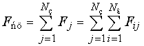 Здесь j – число пятен захвата на контактной площадке, i – число взаимодействий между атомами колеса и рельса в одном пятне захвата, Fj – суммарная сила взаимодействия в одном захвате, N3 – число захватов, Nв – число взаимодействий между атомами колеса и рельса в одном захвате, Fij  – сила взаимодействия между двумя атомами колеса и рельса: