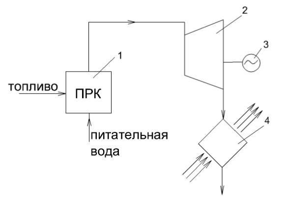 пускорезервная котельная; 2 – сателлитная турбина; 3 – электрический генератор;