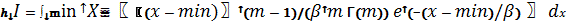 Where min - the minimum value of x (expressed in times/MB), m - form factor, and β - scale factor. We need to assume